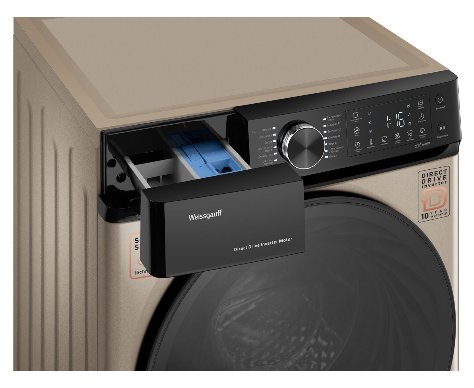 Стиральная машина Weissgauff WM 59411 Direct Drive Inverter Steam Champagne