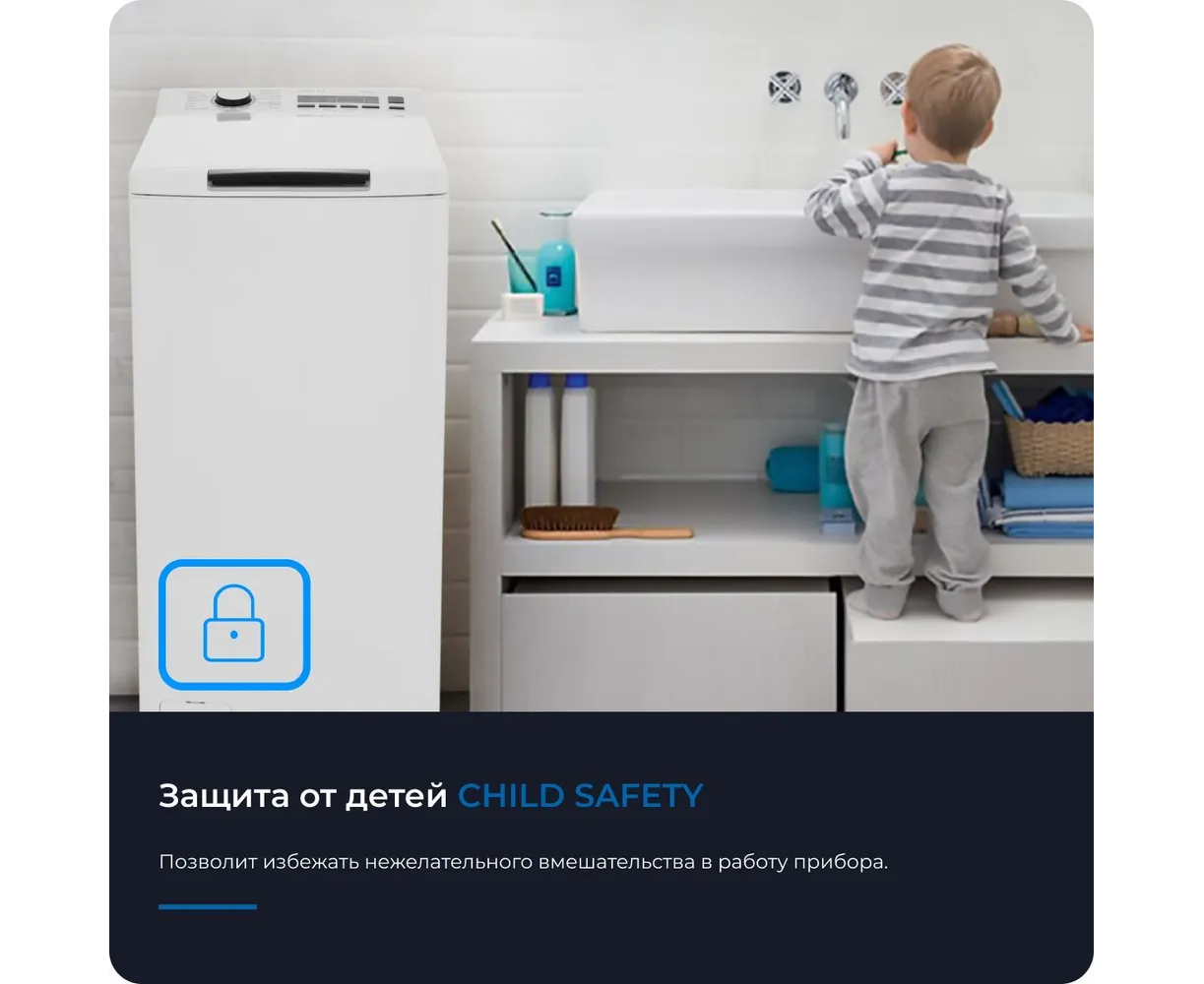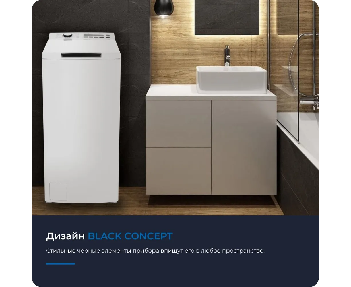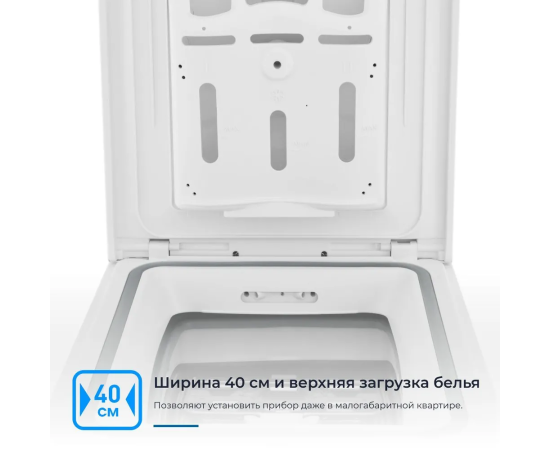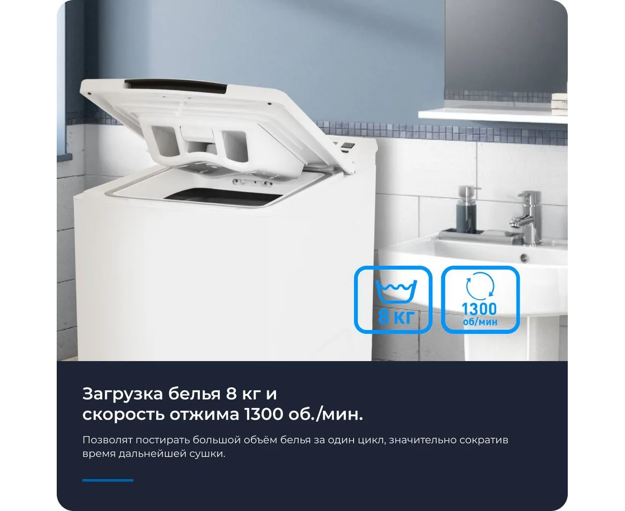 Ее ширина всего 40 см, и она имеет вертикальную загрузку белья, что позволяет устанавливать прибор даже в малогабаритной квартире. Загрузка белья 8 кг и скорость отжима 1300 об./мин позволят постирать большой объём белья за один цикл, значительно сокращая время дальнейшей сушки. Также машина имеет 16 программ стирки, что позволяет выбрать оптимальный режим для различных типов тканей.