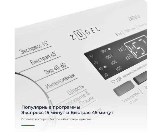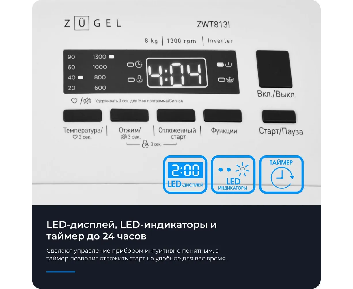 Инверторная стиральная машина ZUGEL ZWT813I — это современное устройство, разработанное для облегчения Вашей повседневной жизни.