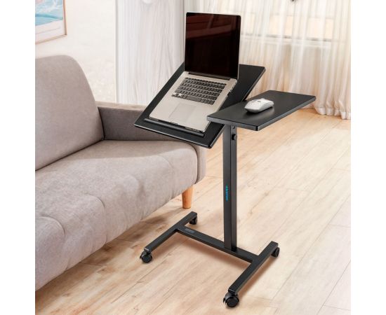 Специально разработанная наклонная секция имеет размер 40х40 см, а фиксированная секция - 40х19,5 см. Толщина столешницы составляет 15 мм, что обеспечивает надежную поддержку для вашего ноутбука или проектора. Материал столешницы - МДФ, а стойка выполнена из прочной стали.