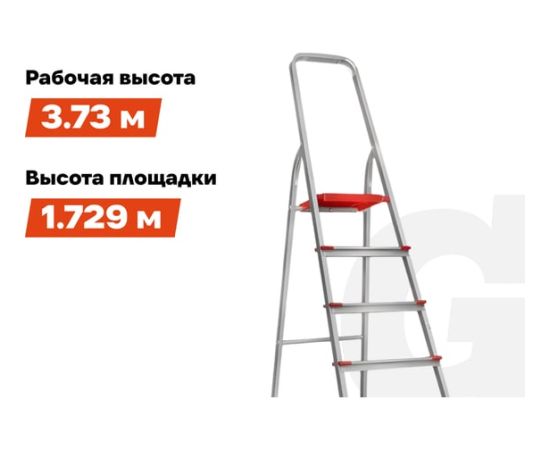 Стремянка Gigant 8 ступеней с шириной 130 мм, PROFI AAA-10 имеет высокую дугу безопасности (600 мм). Cтраховочные ремни - безопасная эксплуатация. Широкие ступени глубиной 130 мм. Опорные пластиковые наконечники против скольжения. Рифленые ступени и площадка - безопасный подъём и спуск. Прочное крепление ступеней к боковинам 6 заклепками - отличная устойчивость. Cтупени и стойки изготовлены из прессованных алюминиевых профилей увеличенного сечения, площадка - из прочного композитного материала.