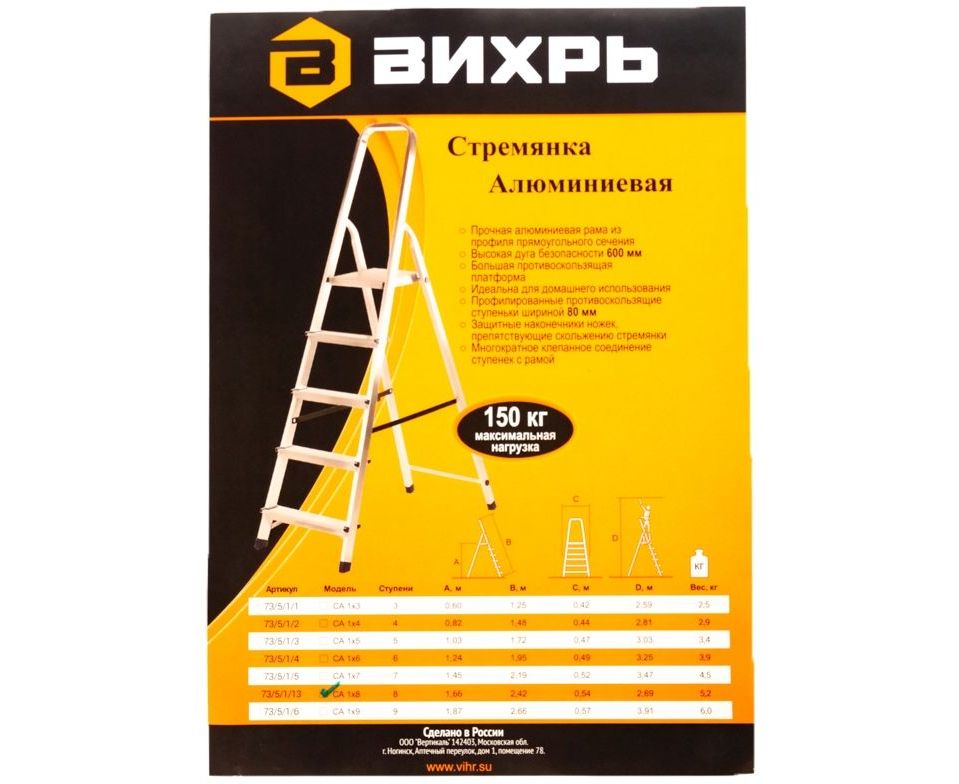 Стремянка ВИХРЬ СА 1х8