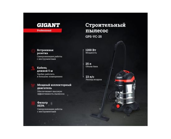 Строительный пылесос Gigant Professional объем бака 25 л, GPS-VC-25