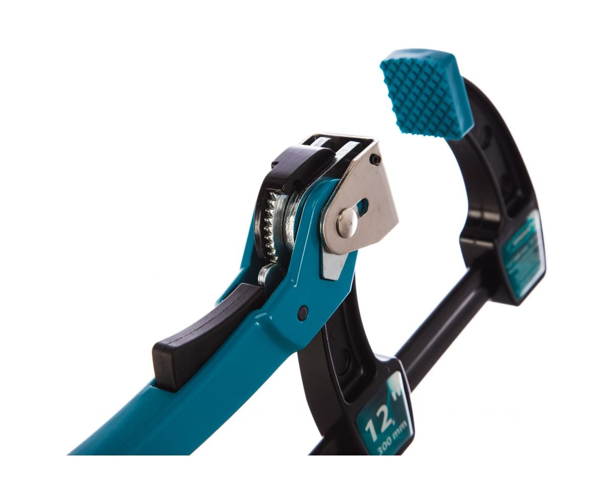 Реечная быстрозажимная струбцина служит для фиксации деталей и конструкций толщиной до 12 дюймов / 300 мм. Губки подводят вплотную к детали, а храповый механизм с рычагом позволяет окончательно зафиксировать ее, максимально используя мускульную силу. Стопорный механизм VIBRAFIX способен удерживать предметы с усилием 1200 Н. Струбцина используется для выполнения профессиональных столярных и слесарных работ.