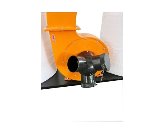 Изделие имеет три патрубка для гофрированных шлангов. В случае работы с двумя или одним входными отверстиями на остальные надеваются заглушки. Специальные хомуты с защелками облегчают и ускоряют смену мешков.