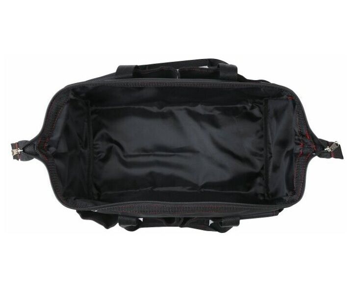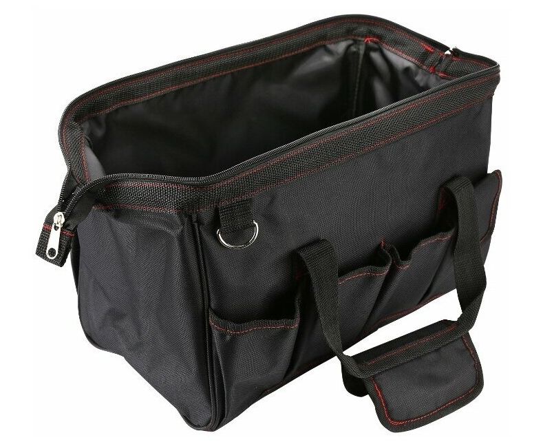 Сумка озволяет организовать хранение различных инструментов и удобство при необходимости их транспортировки. Данная модель отличается увеличенным внутренним отделением и дополнительными карманами для размещения мелких принадлежностей. Всего предлагается 9 отсеков. В качестве материала применяется прочный и устойчивый к повреждениям брезент с хорошими водоотталкивающими свойствами. Для комфортного ношения сумка оснащена двумя ручками плечевым ремнем с металлическими карабинами, который можно использовать по необходимости.