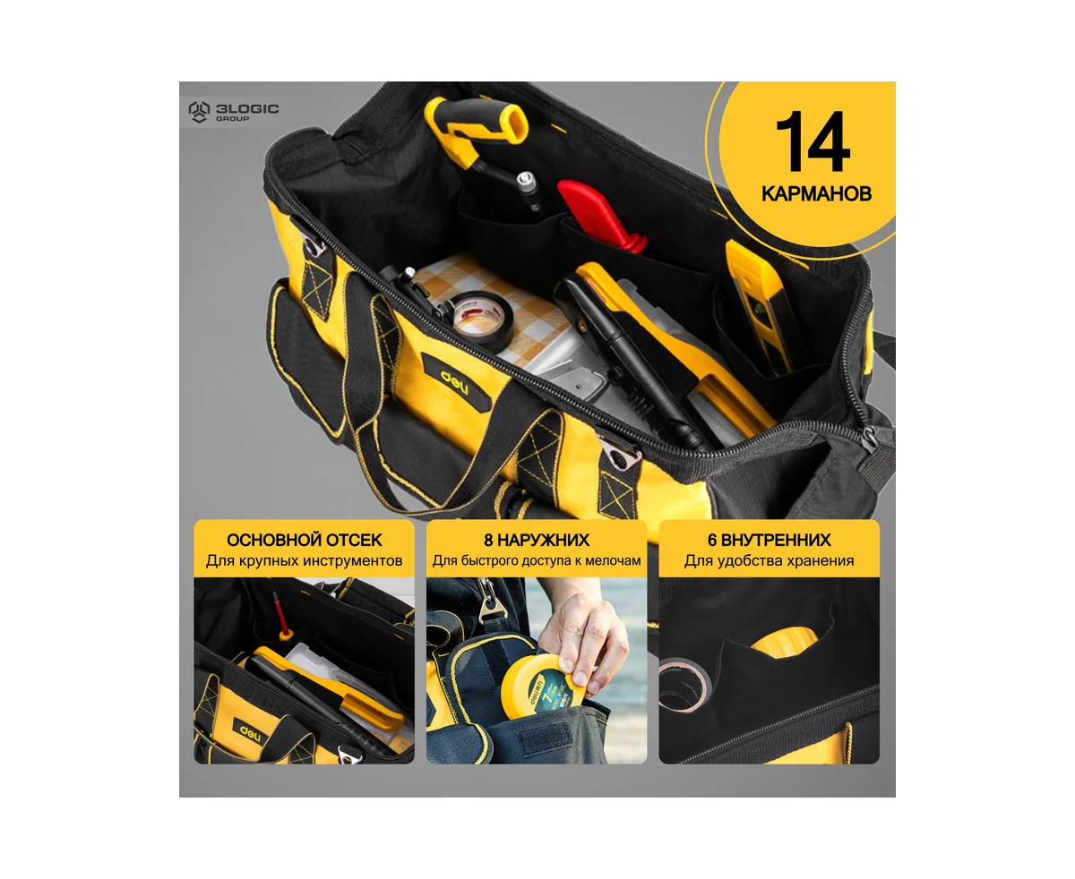 Сумка для инструментов Deli DL430117 400x200x270мм, 14 карманов, плечевой ремень, ткань Оксфорд