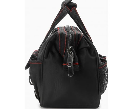 Сумка для инструмента Dr. IRON 360x150x230 мм, с ремнем DR1004 используется для хранения и транспортировки инструмента, различных деталей и крепежа. Экологически чистый безопасный материал сумки не содержит токсичных веществ: фенолов, формальдегидов, тяжелых металлов. С внешней стороны сумки - полиэстер Oxford 600D с ПВХ пропиткой, с внутренней стороны - подкладка из полиэстера.