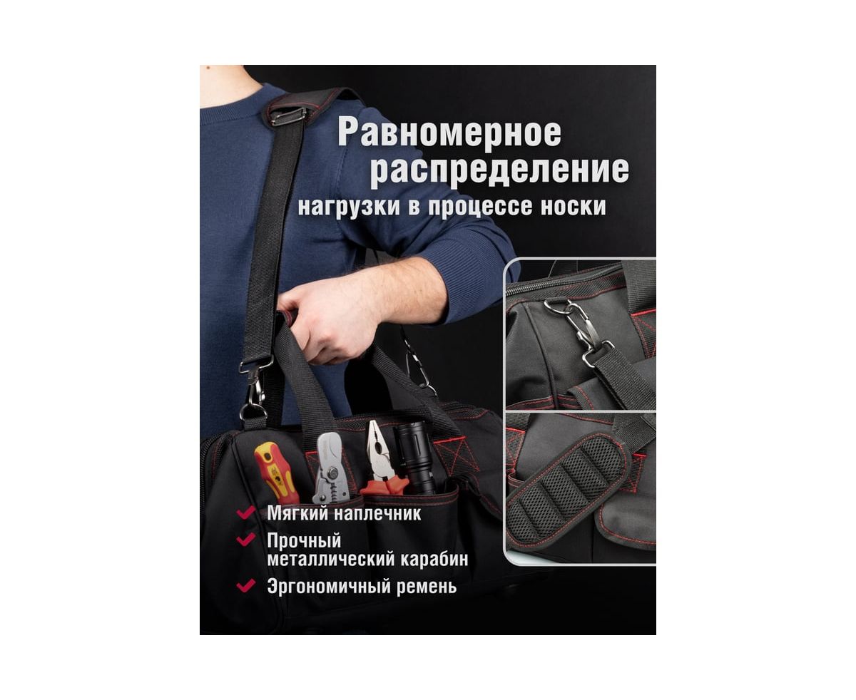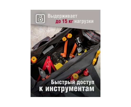 Специальная молния позволяет широко открывать сумку по всей длине для удобства доступа. Сумка для инструмента выполнена из износостойкого водоотталкивающего материала Oxford 600D с ПВХ-пропиткой.