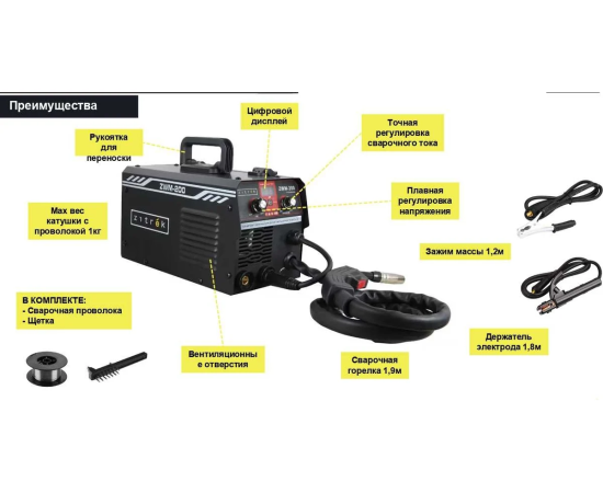 Сварочный полуавтомат Zitrek ZWM-200, 051-4689 MMA/MIG/MAG, 200A