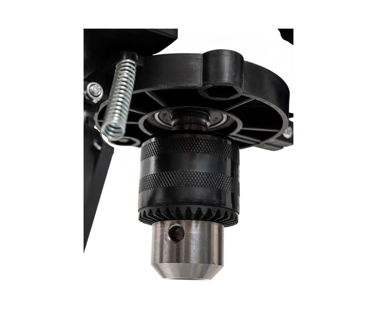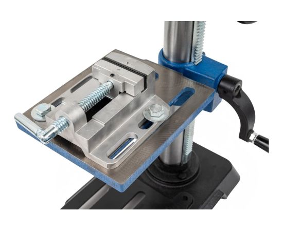 Для точной работы станок имеет несколько полезных функций: входящие в комплект тиски надежно фиксируют заготовку на столе, предотвращая смещение и ошибки при сверлении.
