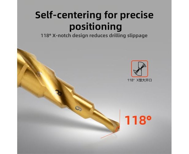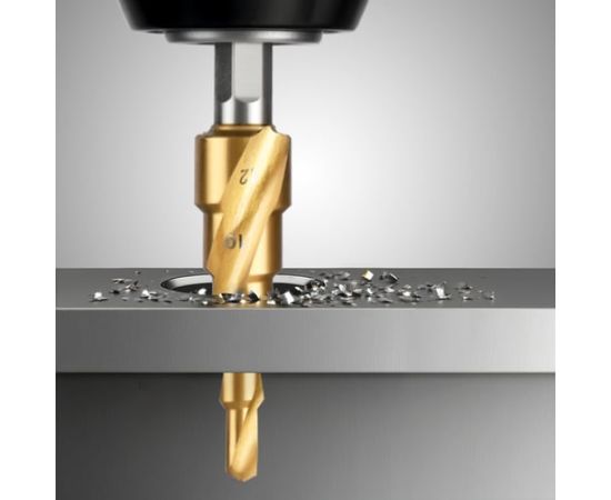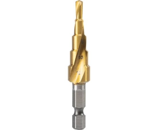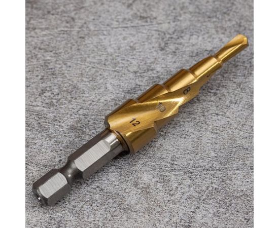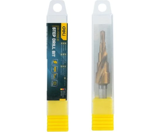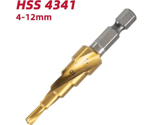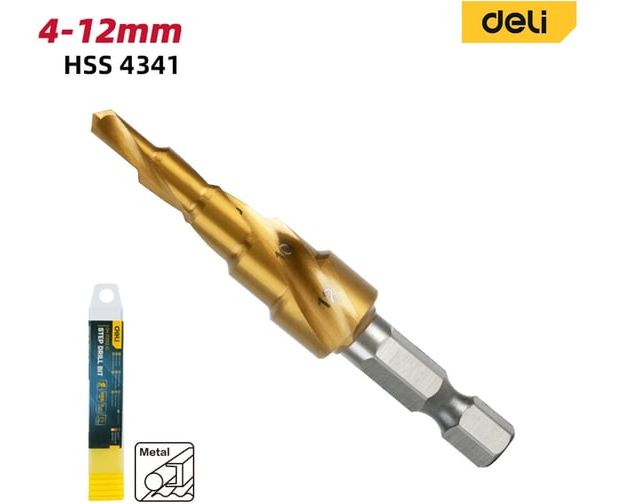 Сверло ступенчатое по металлу Deli DH-JTZ012-E1 4-12мм, HSS 4341 спиральная канавка, шестигранный хвостовик