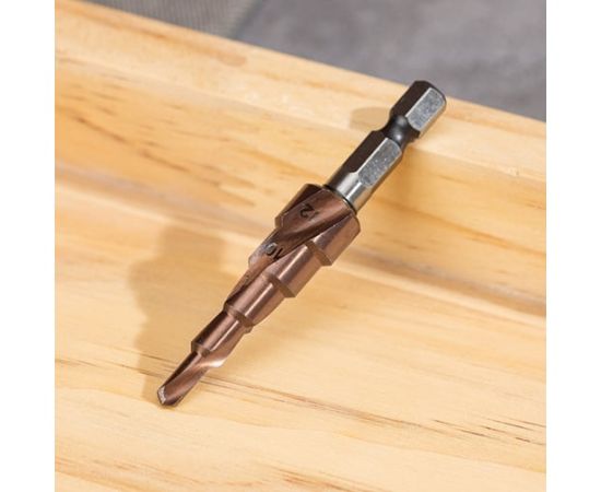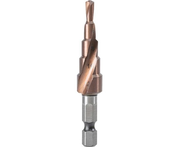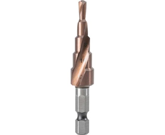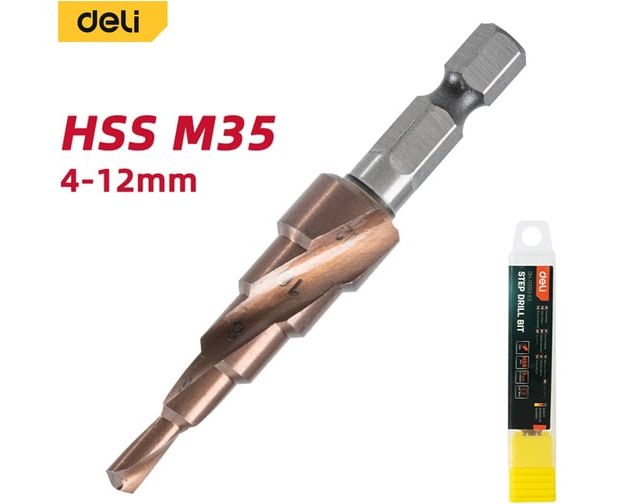 Сверло ступенчатое по металлу Deli DH-JTZ012-E3 4-12мм, HSS M35, спиральная канавка, шестигранный хвостовик