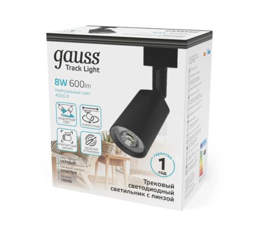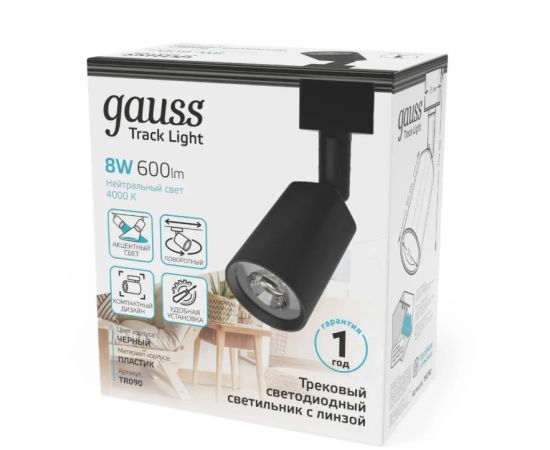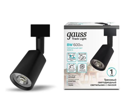 Светильник GAUSS TR090, 4000К, белый нейтральный, черный