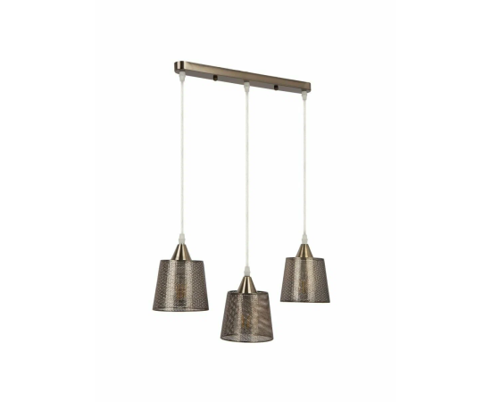 Подвесной светильник Wink H229-3 от английской фабрики Hiper украсит гостиную, прихожую и коридор, спальню, кухню, зону над обеденным столом и кухонным островом, кабинет, зал в стиле современный, кантри, лофт. Материал изготовления — металл, цвет бронза. 3 плафона из металла с цоколем E27 и мощностью ламп 180W, площадь освещения составляет до 9 кв. м. Питание от сети 220V. Технические особенности: регулировка высоты. Монтаж производится на пластину. Габариты: длина — 50 см, ширина — 13 см, высота — 12 см.