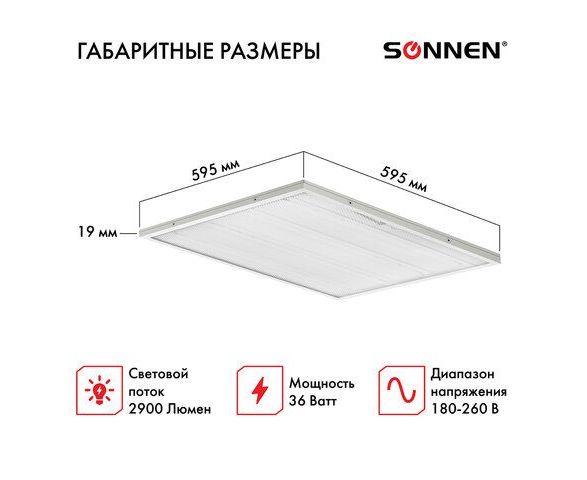 Светильник светодиодный SONNEN 237153 Эко 6500K, холодный белый, 595х595х19мм, 36Вт, прозрачный