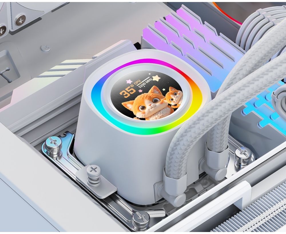 СВО ID-COOLING FX240 LCD White LGA1851/1700/1200/115X/AM4/AM5 (TDP 300W, ARGB Fan and Pump, LCD Display, PWM, Dual Fan)