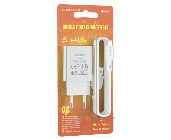 СЗУ 1USB 2.1A для Type-C Borofone BA68A 1м (White)