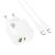СЗУ 1USB+1Type-C 3.0A QC3.0 PD 20W быстрая зарядка для Lightning 8-pin Type-C Hoco CS54A 1м (White)