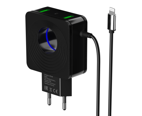 СЗУ 2USB 2.1A для Lightning 8-pin со встроенным кабелем и LED подсветкой More choice NC48i (Black)