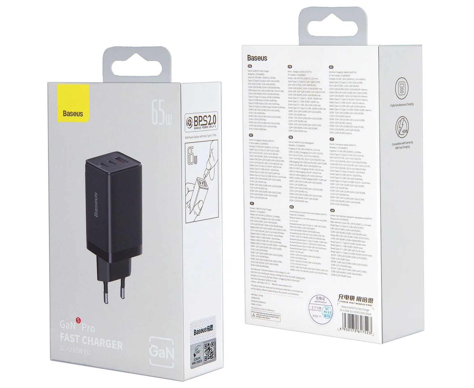 СЗУ Baseus GaN5 Pro CCGP120201 Fast Charger 2C+U 65W EU Black