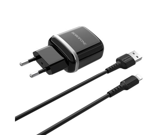 СЗУ Borofone BA25A 5V/2.1A 2USB Outstanding + lightning cable, black