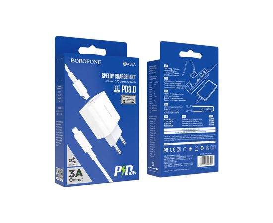 СЗУ Borofone BA38A Plus Speedy PD20W charger set(C TO Lightning), white