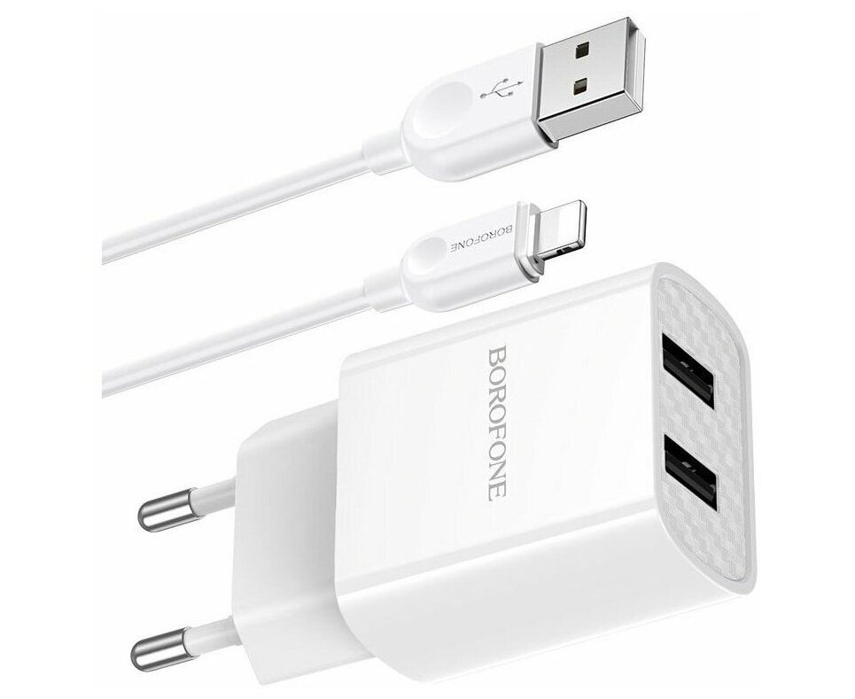 СЗУ BOROFONE BA53A Powerway dual port 2,1А + lightning cable, (белый)