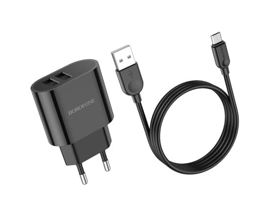 СЗУ BOROFONE BA63A Richy 2USB, 5V, 2.4A digital display + Micro (чёрный)
