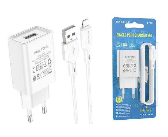 СЗУ BOROFONE BA68A Glacier 1USB + Lightning (белый)