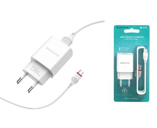 СЗУ BOROFONE BA68A Glacier 1USB Micro (белый)