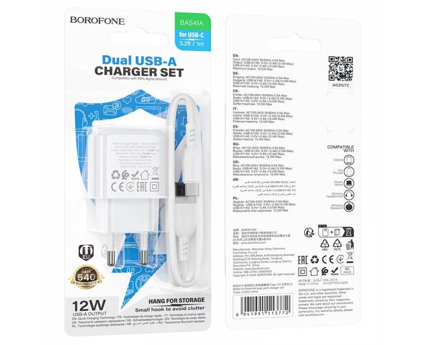 СЗУ BOROFONE BAS41A Potential dual-port (Micro) (белый)