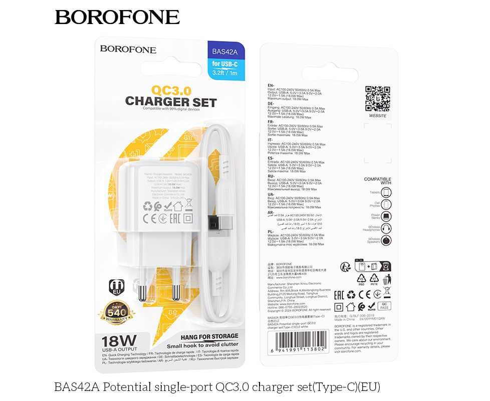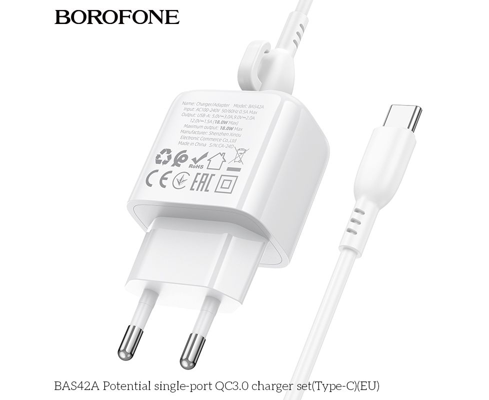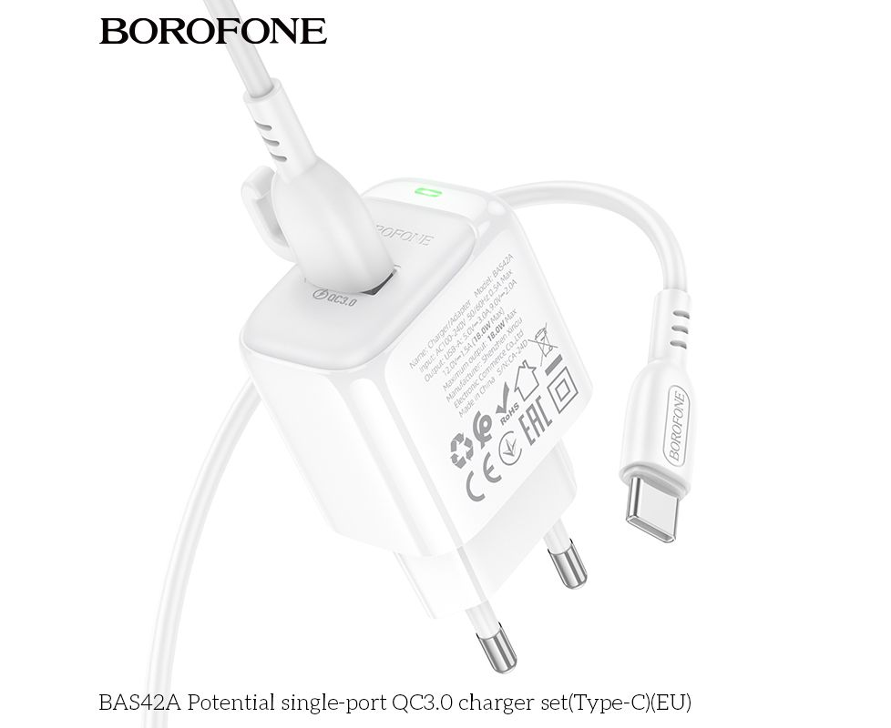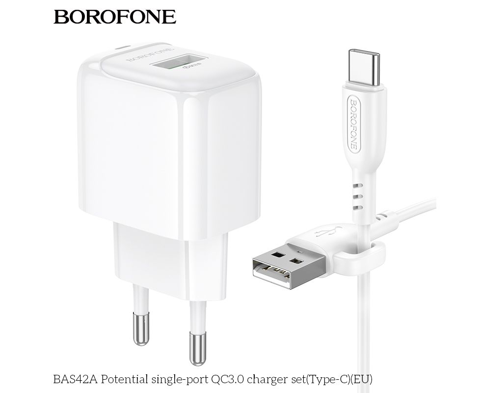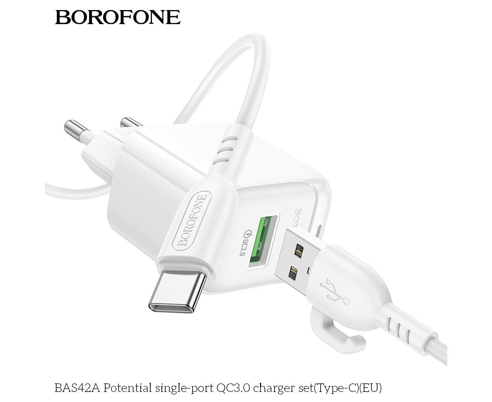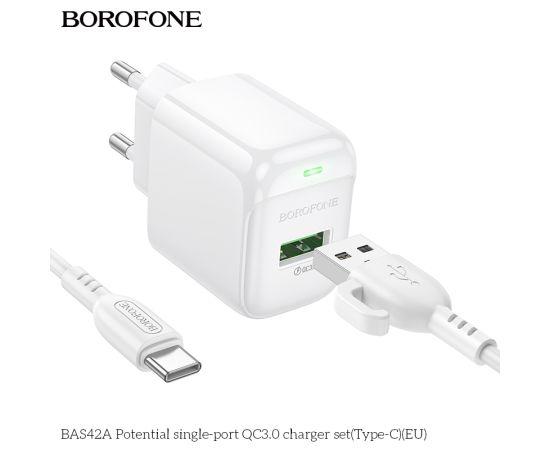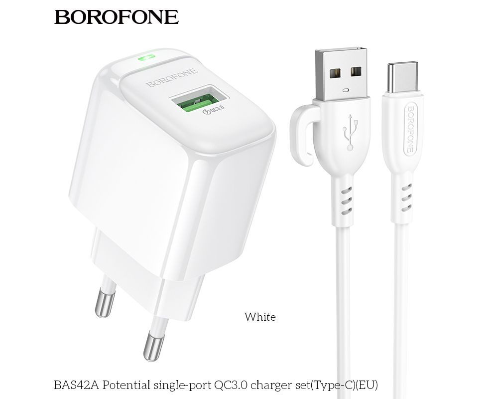 СЗУ BOROFONE BAS42A Potential single-port QC3.0 charger set(Type-C)(EU) (белый)