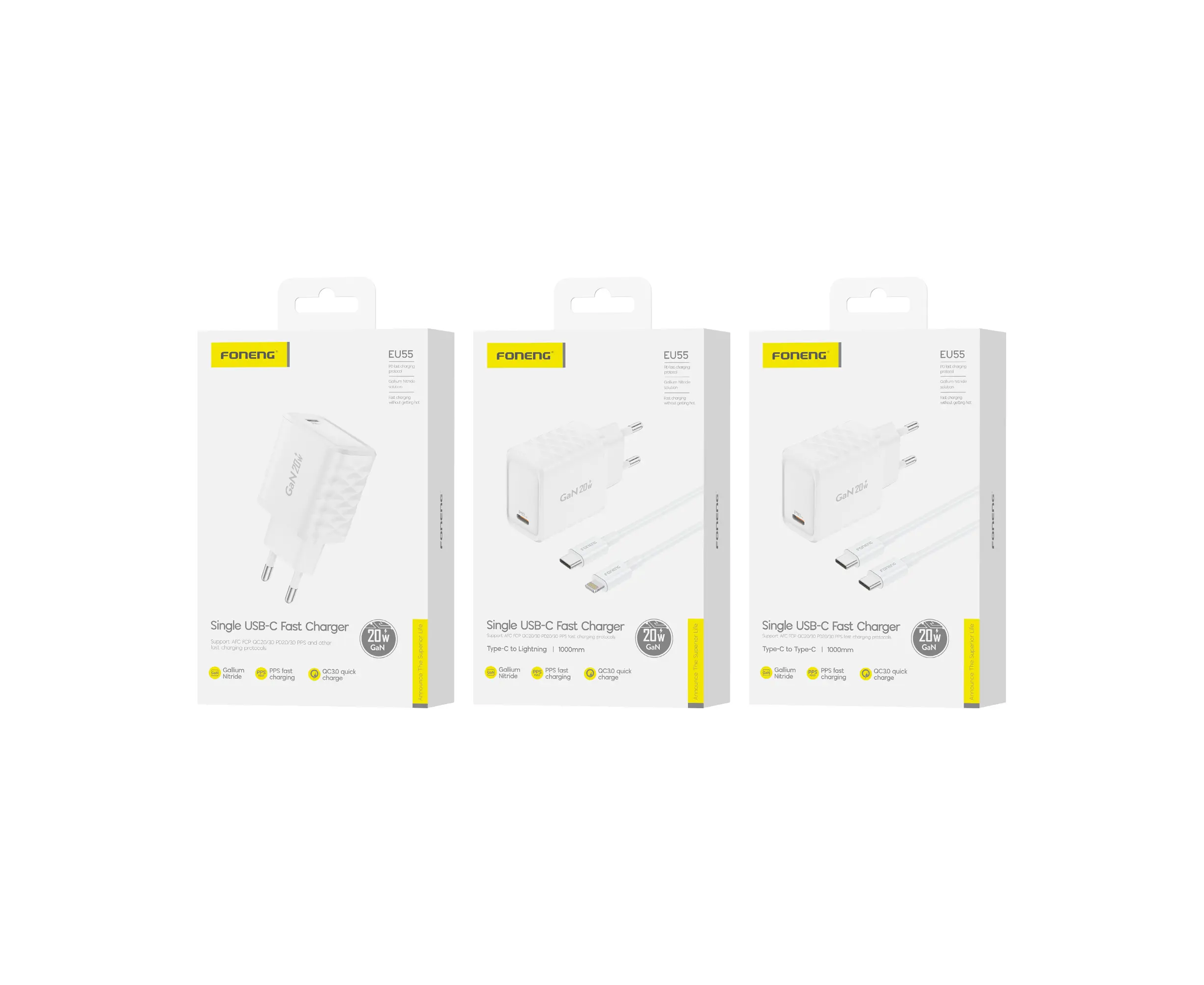 СЗУ Foneng EU55 GaN, PD20W + (Type-C to Type-C) (White)