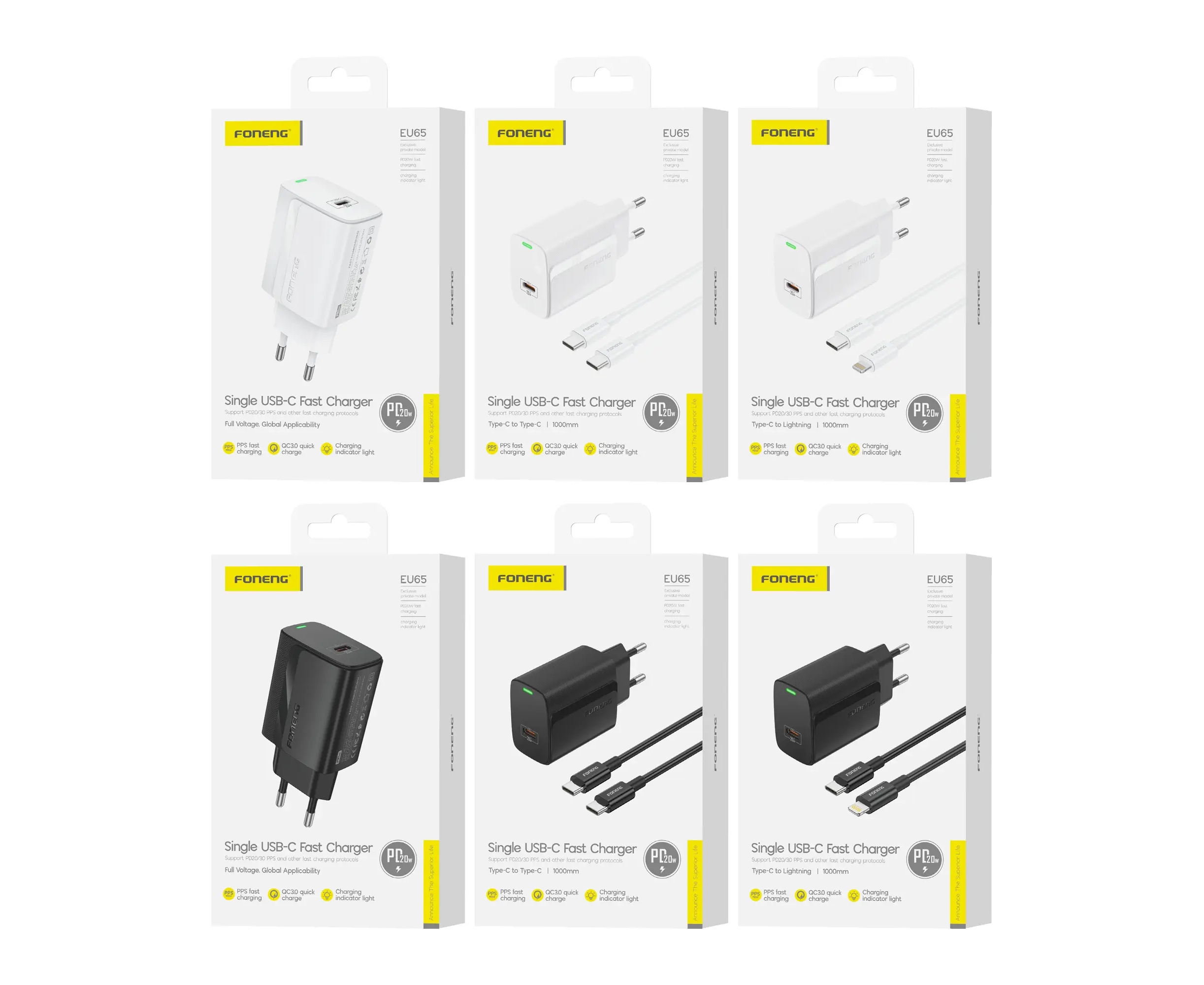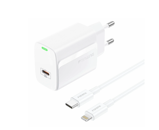 СЗУ Foneng EU65 USB-C, PD20W + кабель Type-C - Lightning (White)