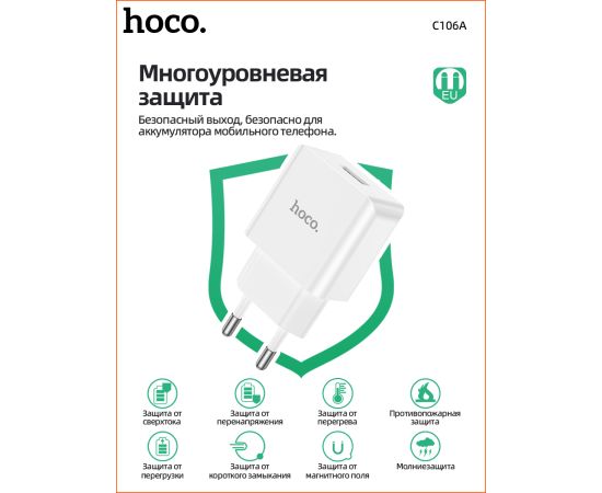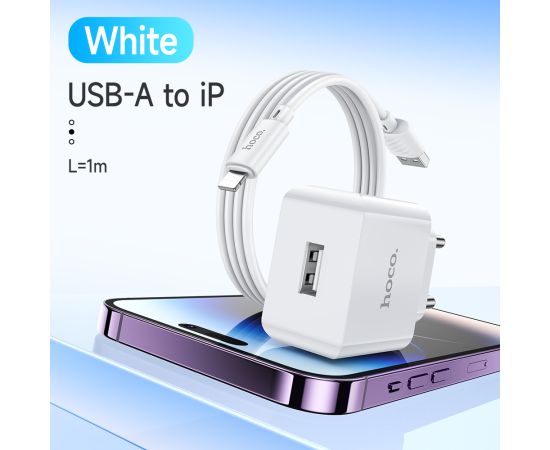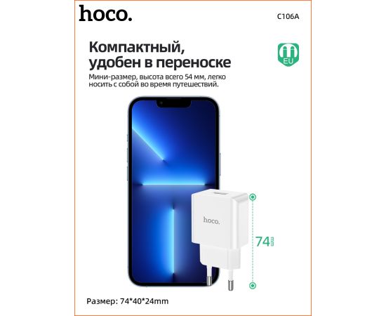 СЗУ HOCO C106A Leisure, 1USB + iP (EU) (белый)