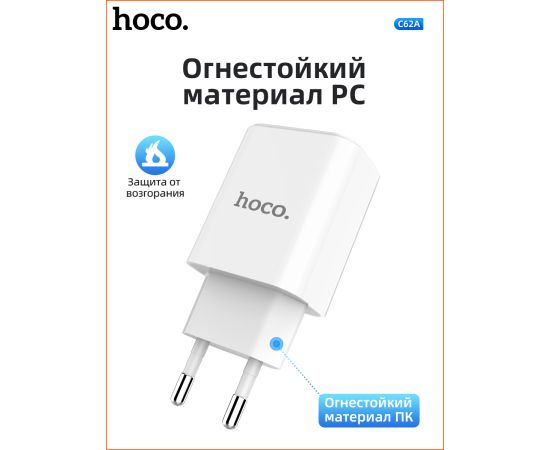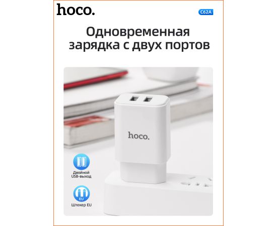 СЗУ Hoco C62A Victoria dual port 2.1A, white
