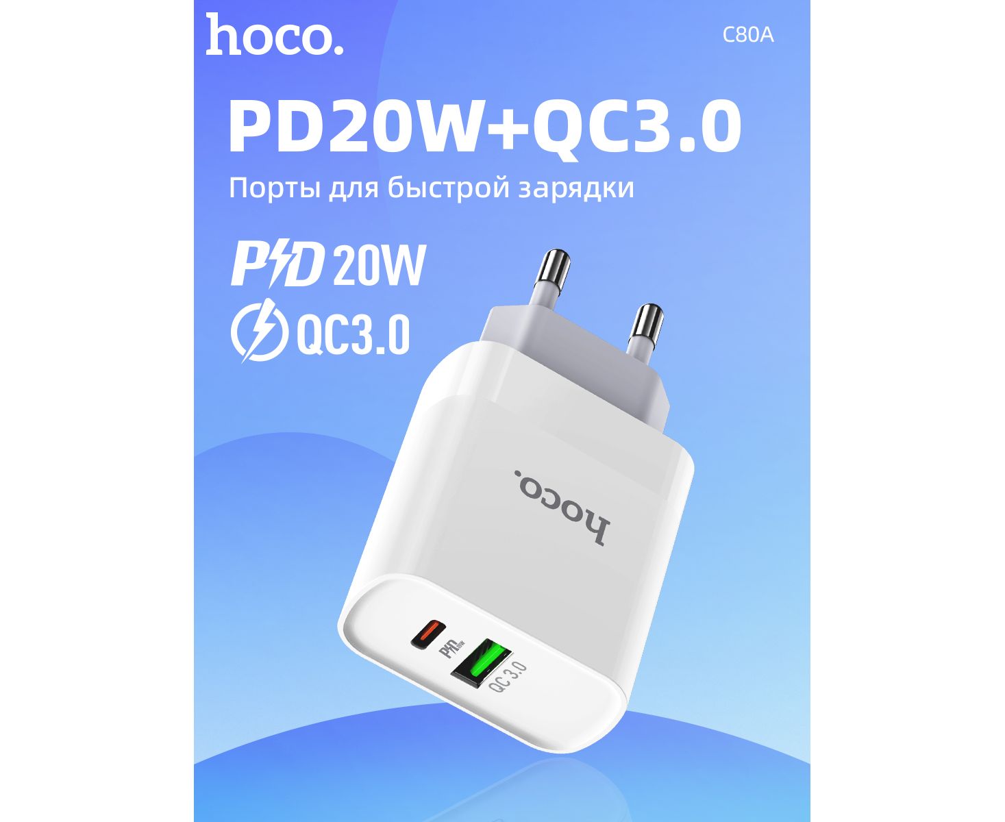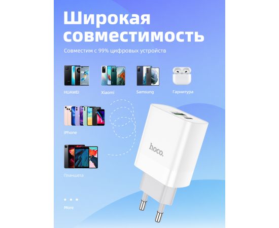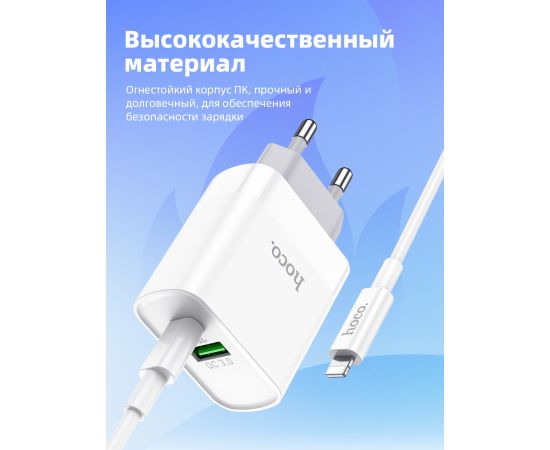 СЗУ Hoco C80A Rapido PD+QC3.0 charger set(Type-C to Lightning), white