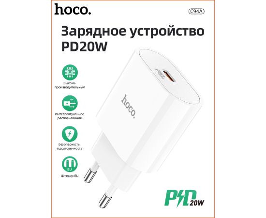 СЗУ HOCO C94A Metro, 1USB, PD20W (белый)