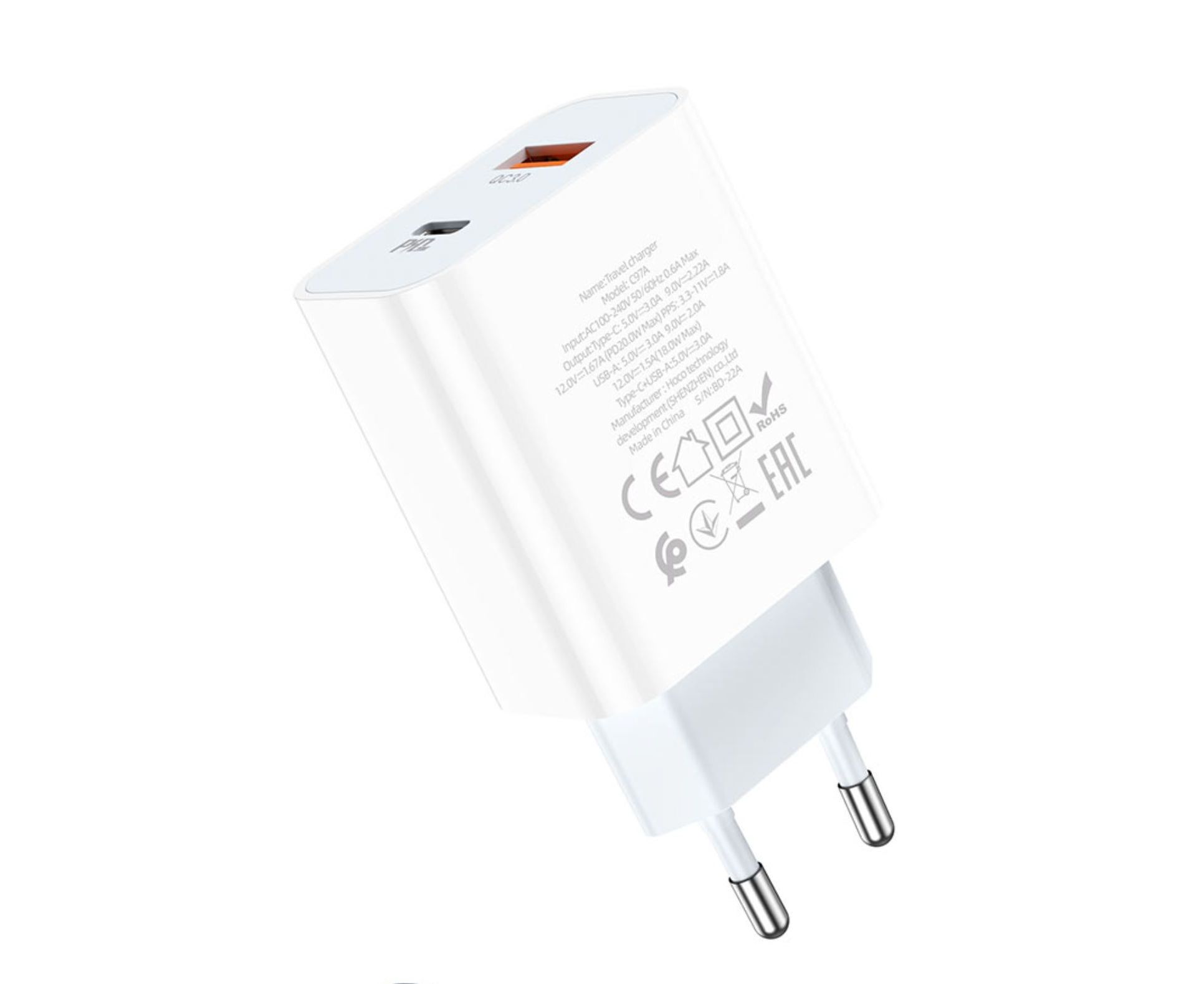 СЗУ HOCO C97A PD20W+QC3.0+ Type-C toLightning (белый)
