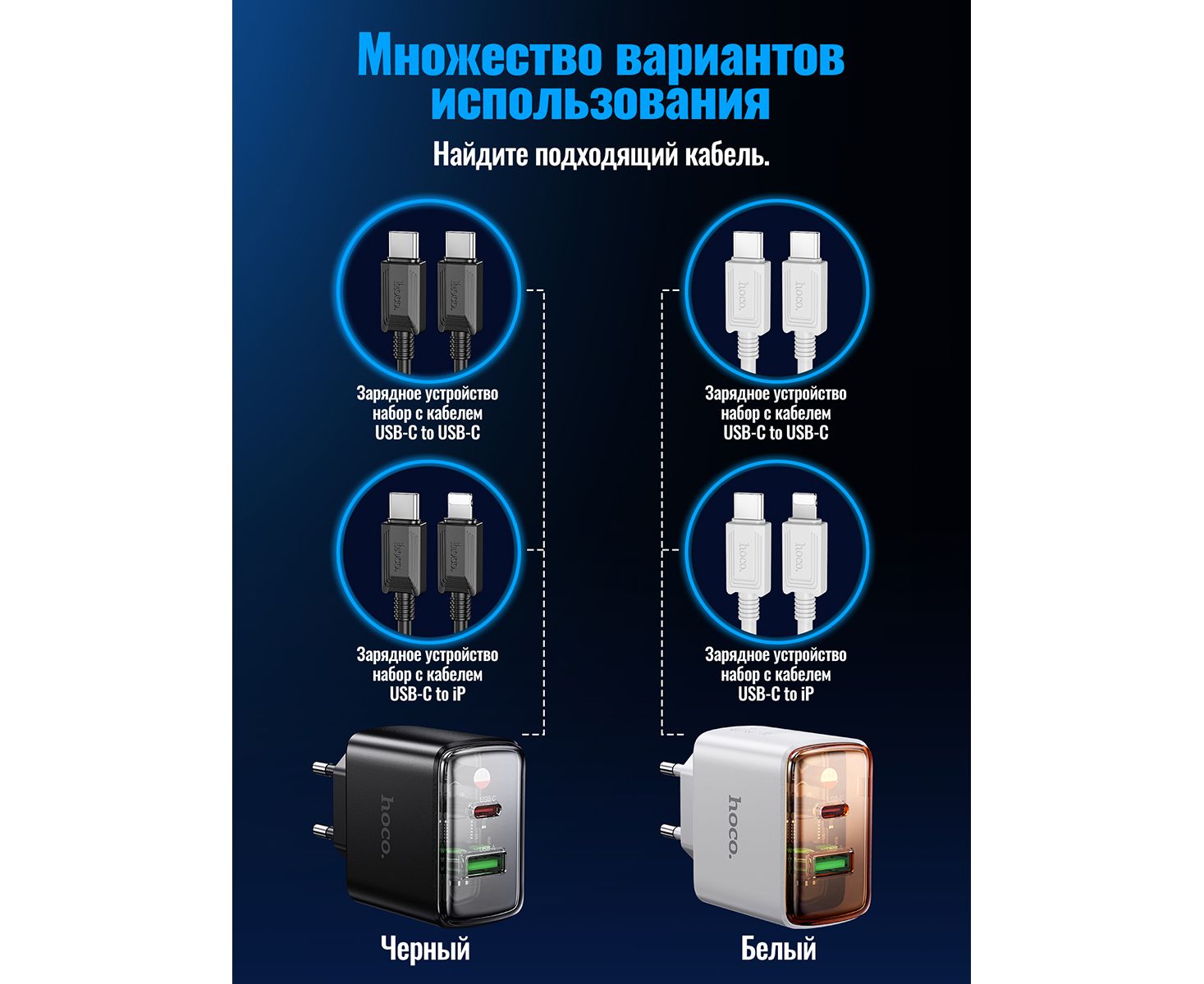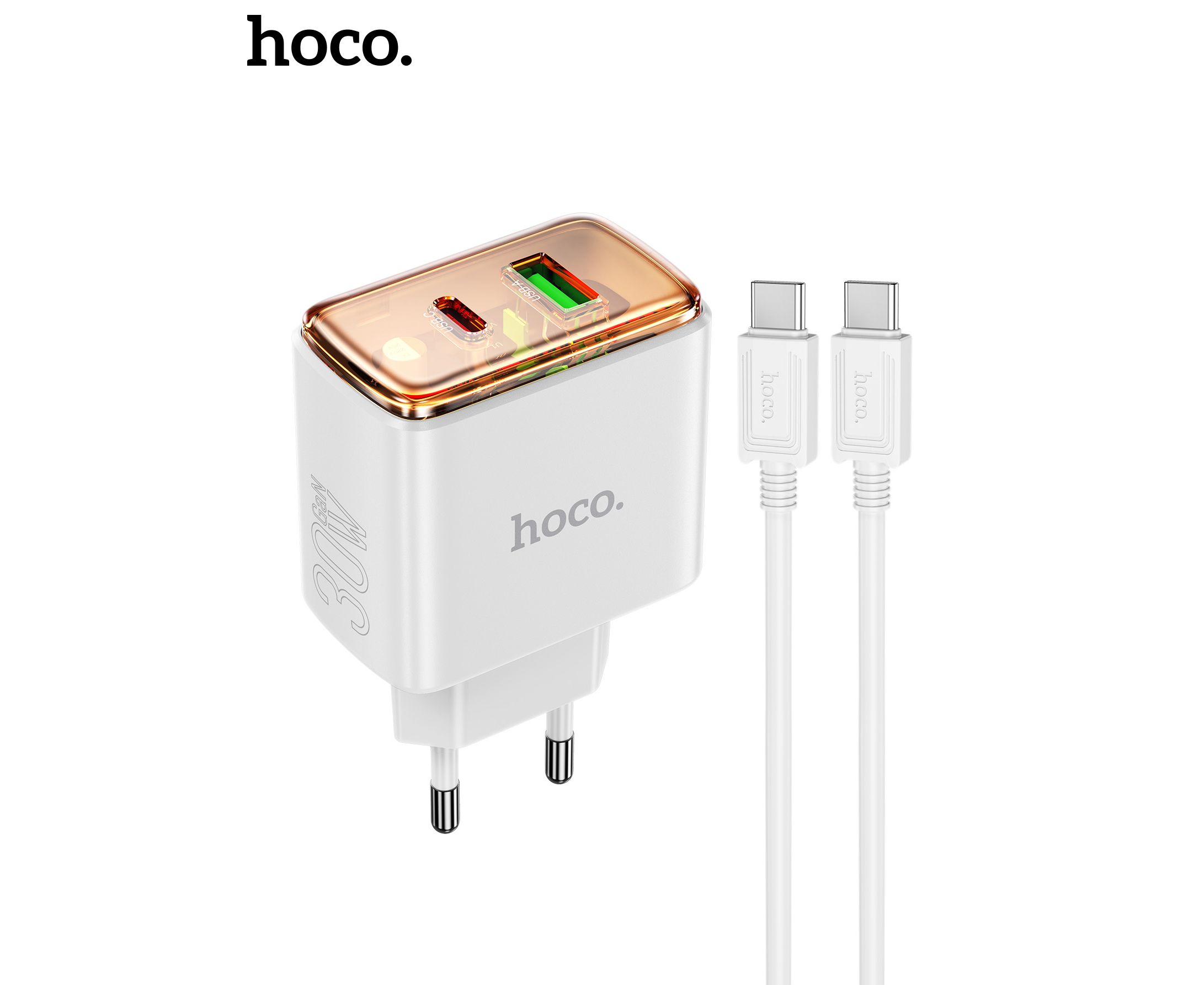 СЗУ HOCO CS42A Smart PD30W+QC3.0 charger set(Type-C + Type-C)(EU) (белый)