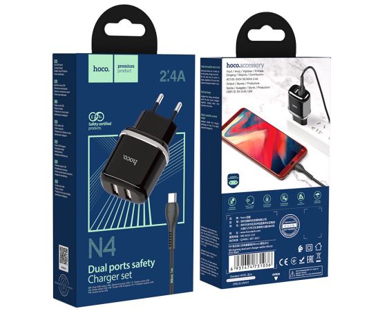 СЗУ HOCO N4 Aspiring 2USB +Micro 2.4A, чёрный