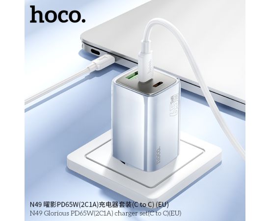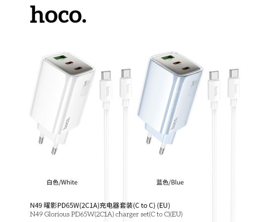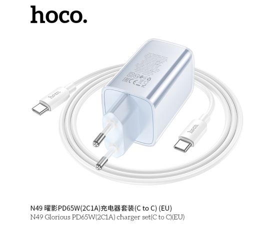 СЗУ HOCO N49 Glorious PD65W(2C1A) cabel Type-C to Type-C (голубой)