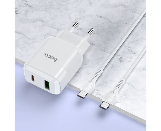 СЗУ HOCO N5 Favor 2USB, PD20W, QC3.0 charger set, Type-C + lightning (белый)