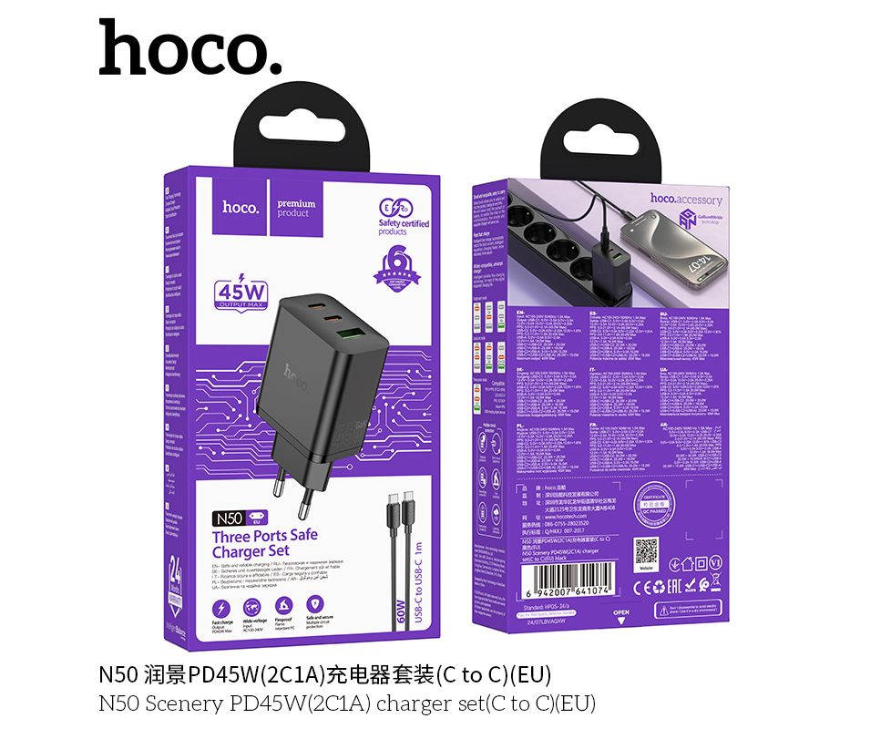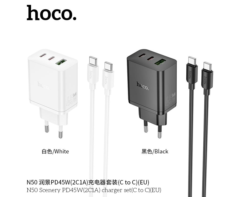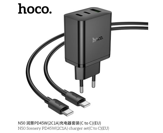 СЗУ HOCO N50 Scenery PD45W(2C1A) cabel Type-C to Type-C (черный)