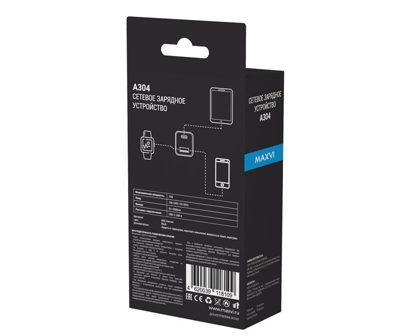СЗУ Maxvi A304 Type-CUSB 3A 15W black