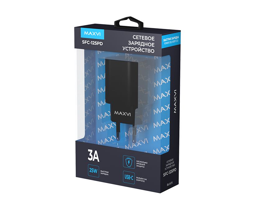 СЗУ Maxvi SFC-125PD Type-C 3А 25W PD QC3.0 black