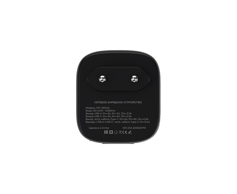 Дополнительно USB-A + USB-C + встр. кабель: 5V⎓3.4A