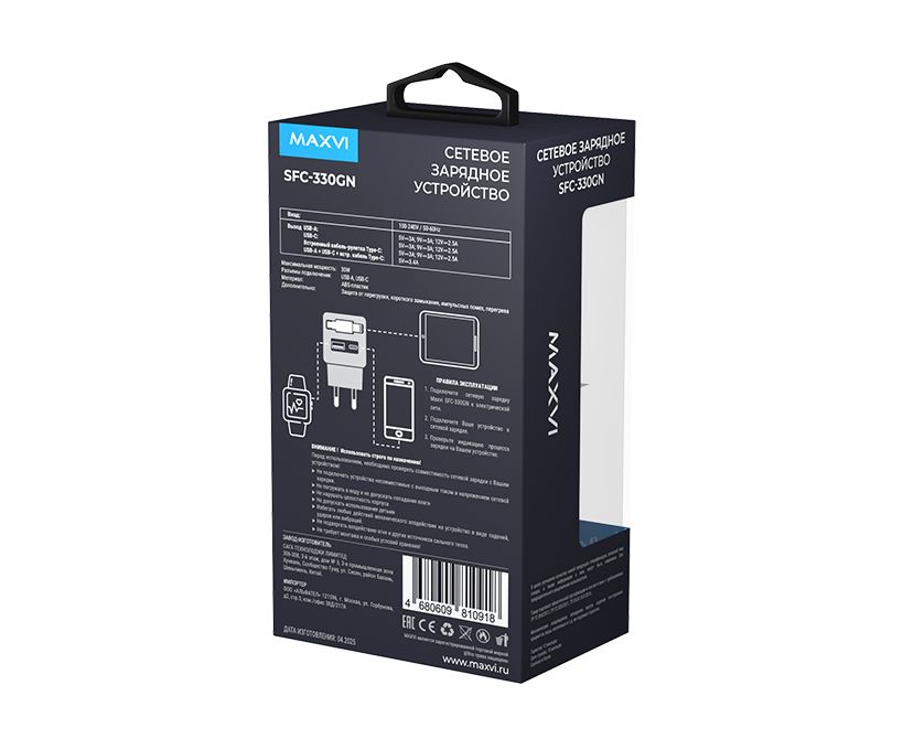 СЗУ Maxvi SFC-330GN Type-CUSB 30W PD QC3.0 black