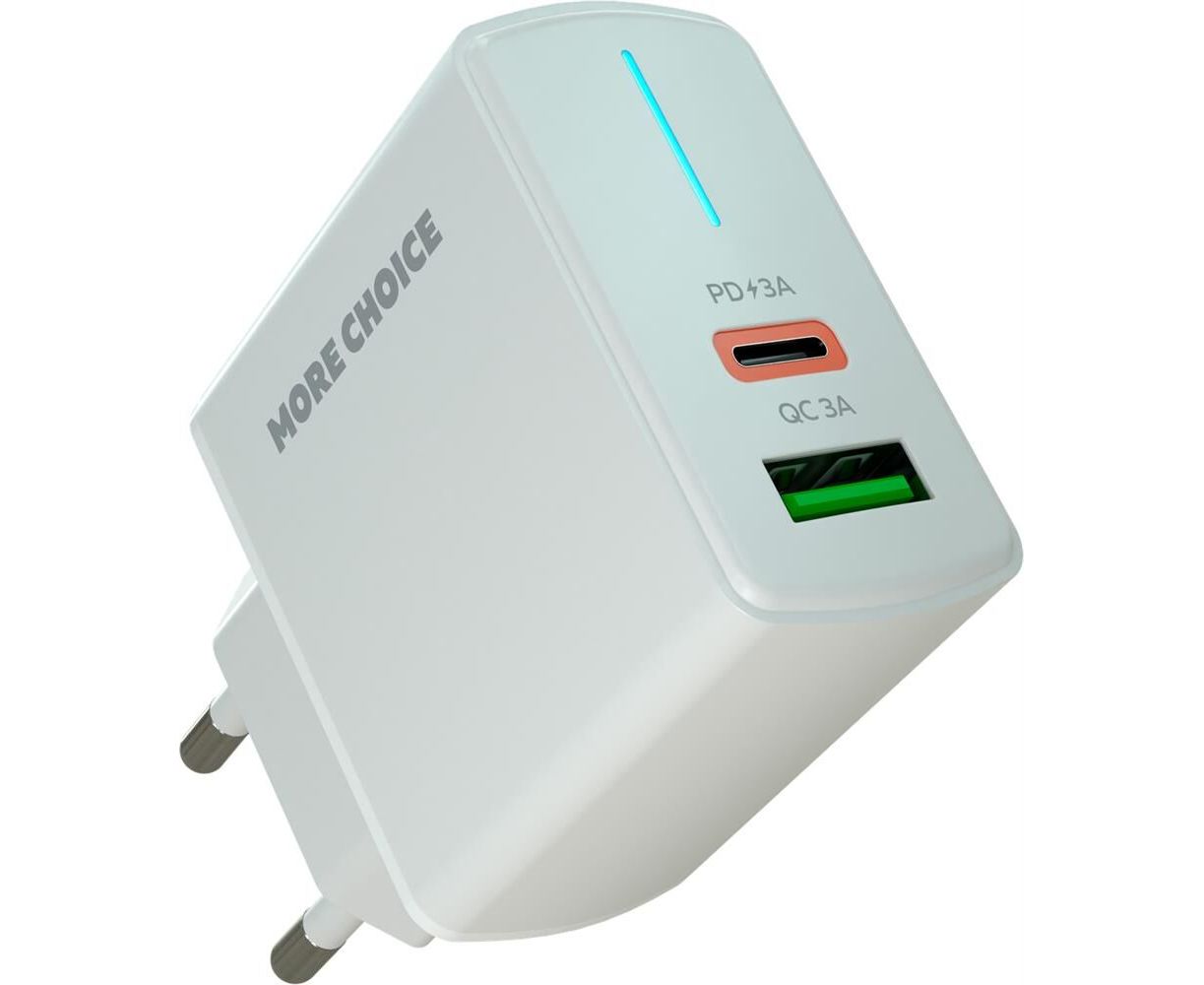 СЗУ More Choice NC61a 1USB+1Type-C 3.0A PD20W+QC3.0 быстрая зарядка для Type-C Type-C White